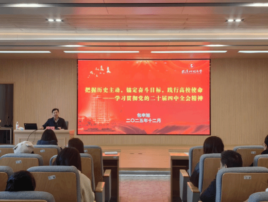 包申旭从全会历史方位、“十五五”规划逻辑主线、战略部署践行路径三个维度,系统拆解了全会为“十五五”时期划定的发展蓝图。他指出,国家经济稳进增长、科技创新突破、民生保障提质等鲜活实践,让师生深刻感受到在“坚持党的全面领导”下的发展底气与制度优势。